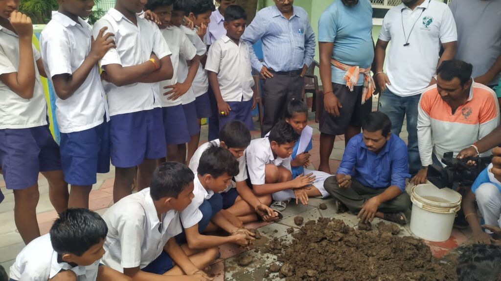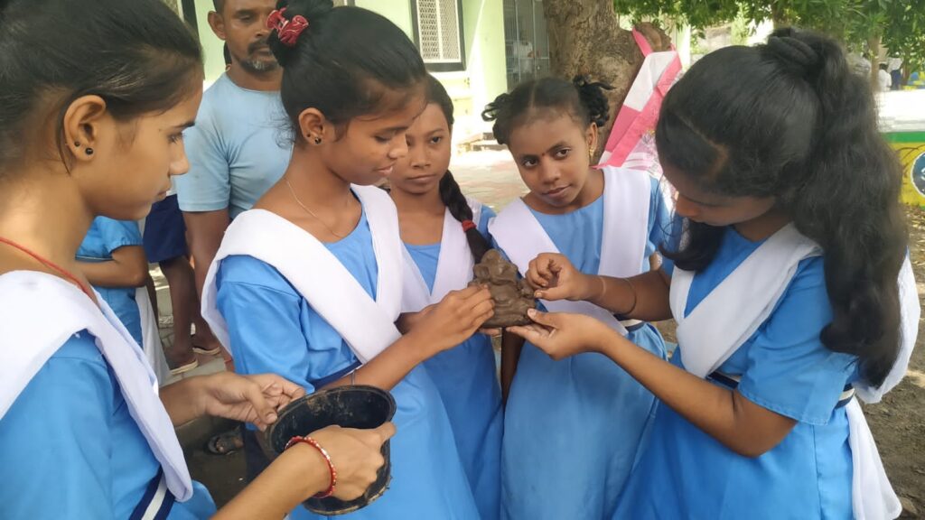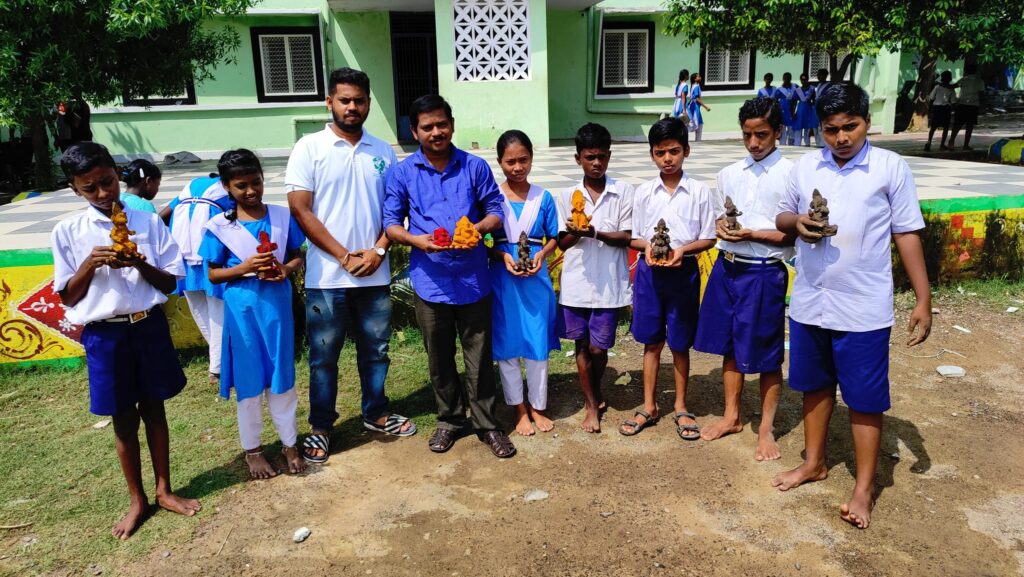 An awareness program was organized jointly by Berhampur Sabuja Bahini, Satya Art and Craft, and Berhampur Municipal High School, Old Berhampur, to encourage students to avoid chemical-based idols during the festive season. As part of the initiative, students were trained to make eco-friendly Ganesh idols using natural materials.